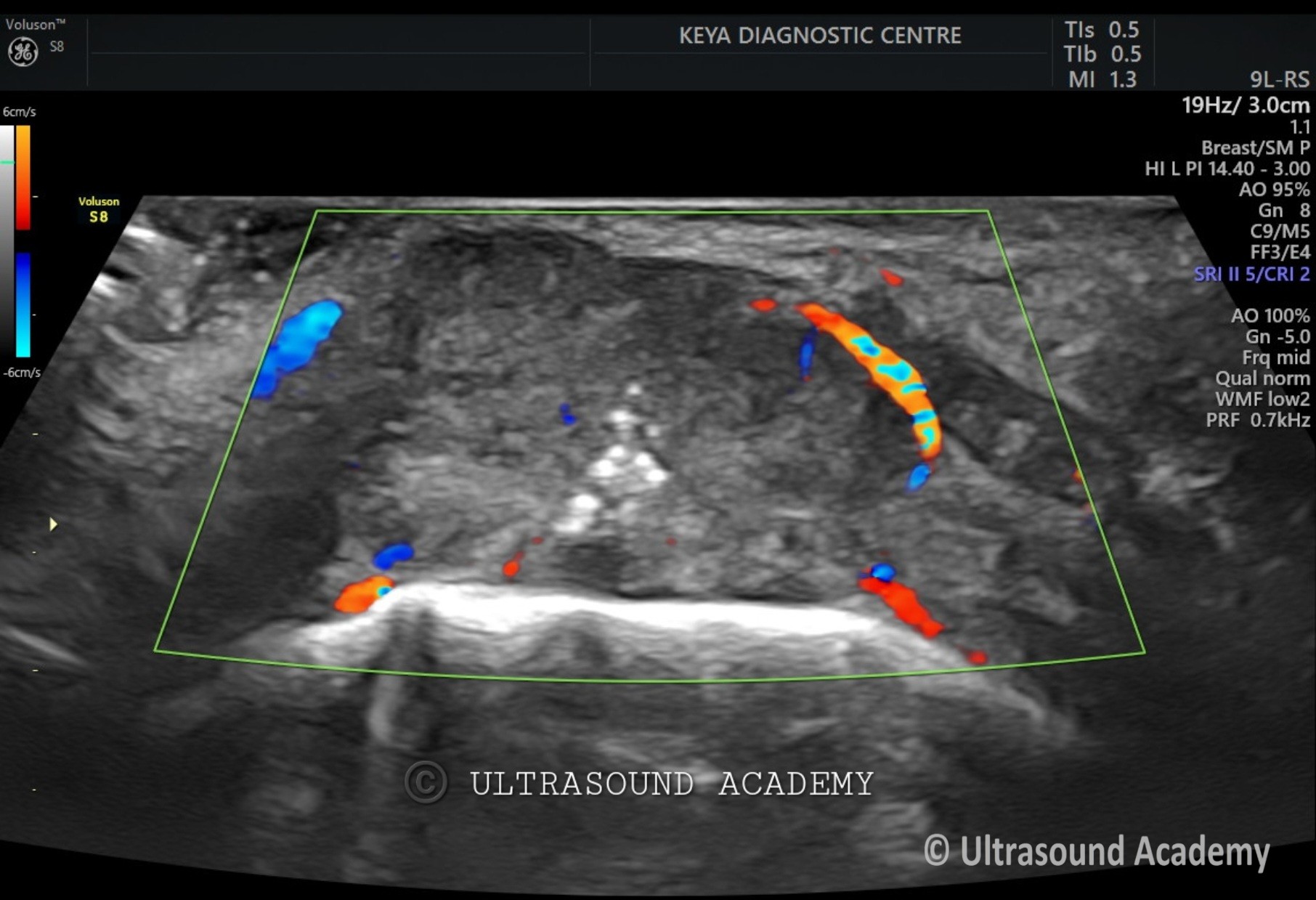 Increased vascularity seen within the lesion on color Doppler.